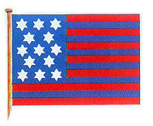 Flown on the right flank of the American lines at Yorktown, October, 1781, as painted by Loyalist Lt. Col. John Graves Simcoe, Commander of the Queen's Rangers, who was stationed across the river at Gloucester, NJ.