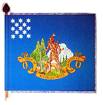 An Indian representing America, laying his hand on the Cap of Liberty, placed on a pedestal, with his bow strung, and his Dog by his side.
