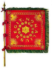 Raised principally in the Baltimore, MD area, this banner was made for and presented to the brave Count Pulaski by the Moravian sisters at Bethlehem, PA after he raised and organized an independent corps of sixty-eight horse and two hundred foot soldiers in Baltimore in 1778. Pulaski received the banner gratefully and bore it gallantly through many battles until he fell at Savannah, GA in the autumn of 1779. The banner was saved by his lieutenant and eventually reached Baltimore after the close of the War.